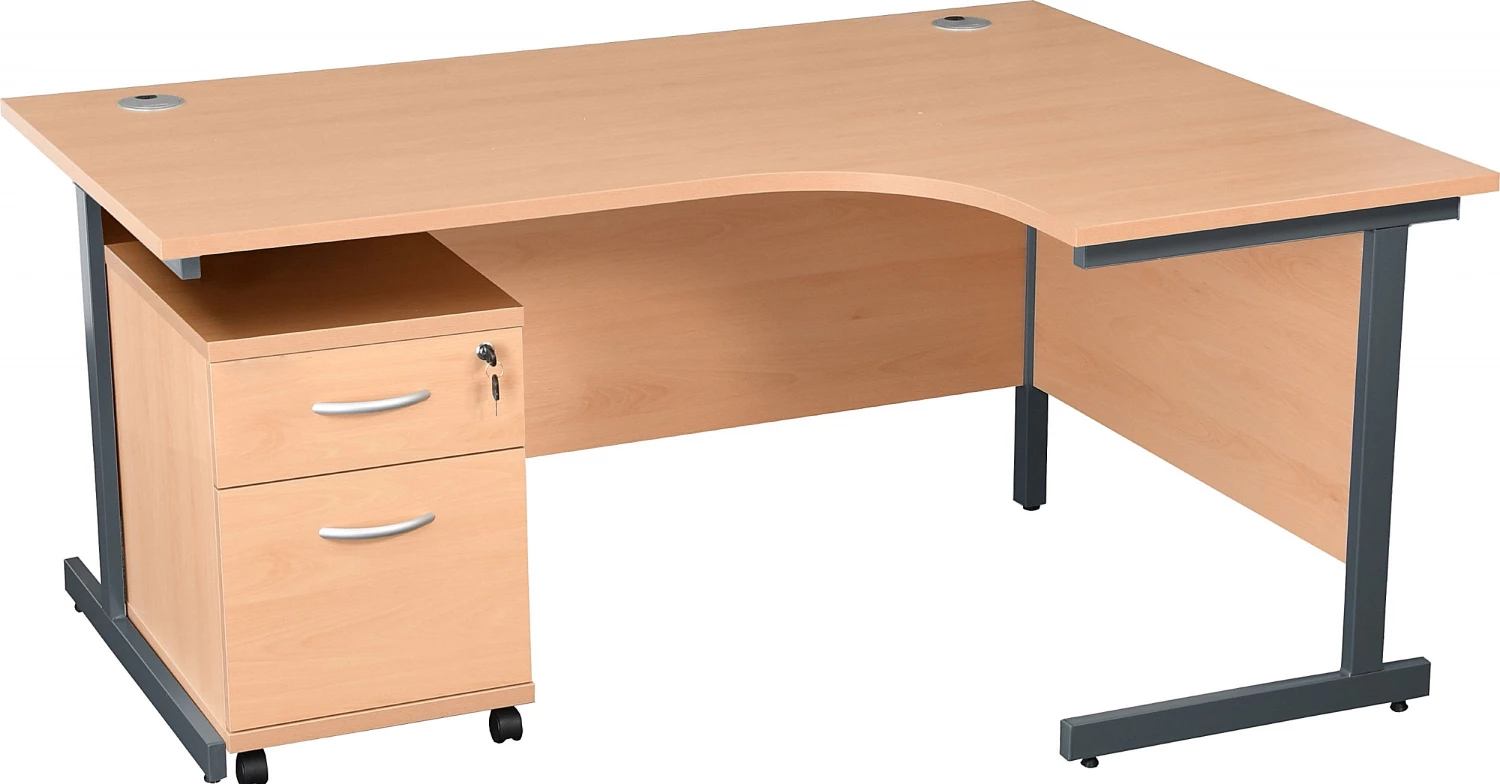 - Classic cantilever design ergonomic office desks with a handy under desk pedestal.
