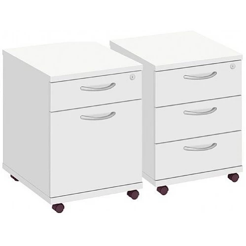 - 2 drawer pedestal features 1 box and 1 filing drawer.