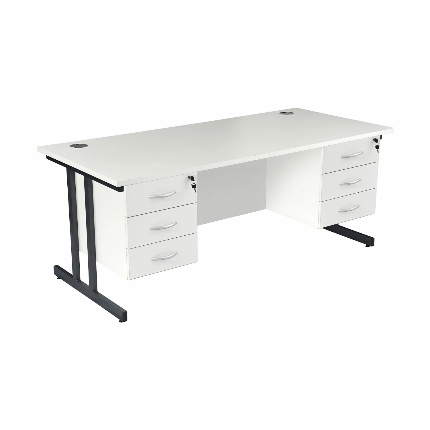 - Classic dual upright cantilever design rectangular office desks with 2 fixed storage pedestals.
