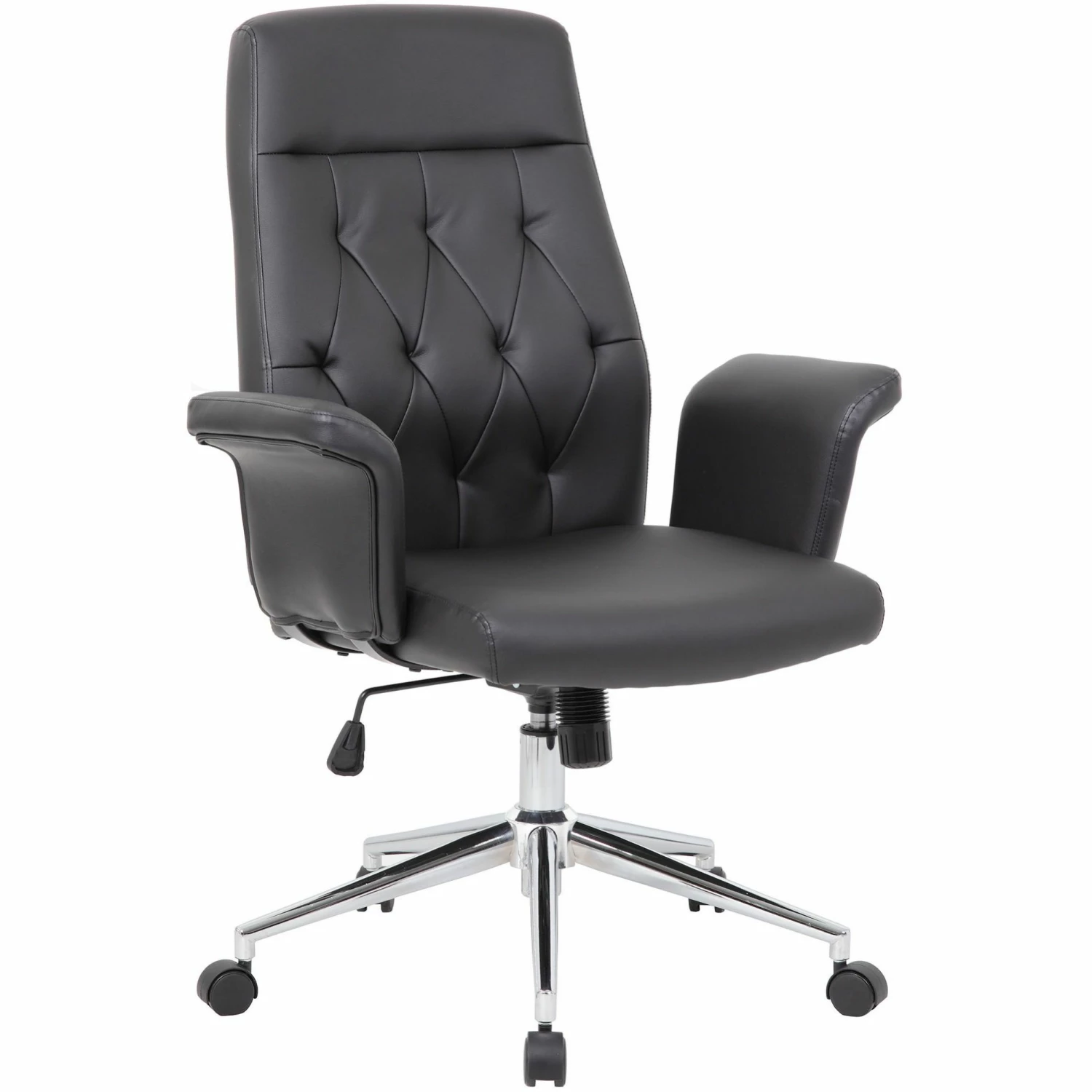 - Features glossy chrome gas lift and spider base.